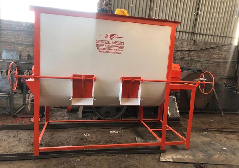 To mix the different ingredients collected from the Hammer Mill through elevator and also to add medicine, Minerals, Molasses / Oils or any micro nutrients. Cylindrical type all M.S Fabricated with 7mm Main shaft 80mm with heavy duty arms for homogenous mixing,